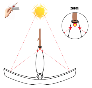 Guide the SOLRCASE's mirrors in maximal opening towards the sun and bring the point of light on the area to light. The parabolic mirros focus immediately on the heating point.